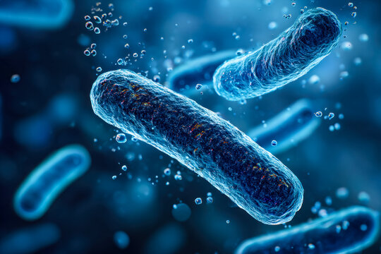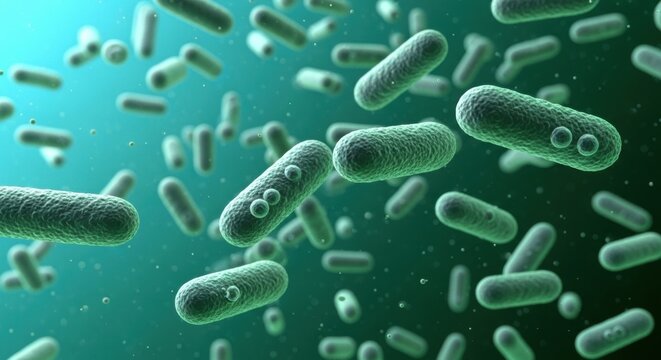 Microscopic World: Detailed Render of Bacteria Cells on Teal Background