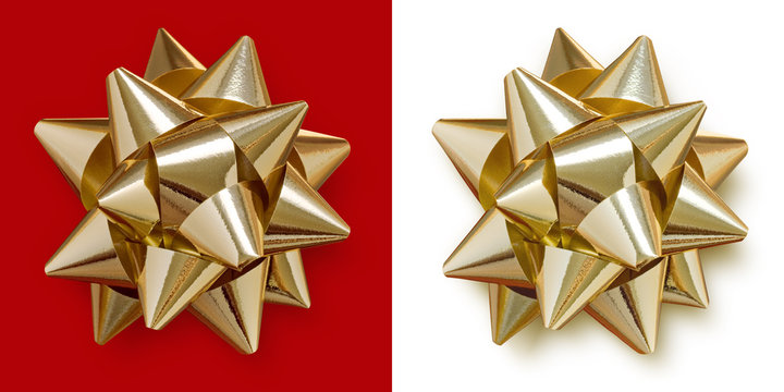 Angled View Red Rosette Ribbon with Shiny Fabric Texture, Blank Center, Isolated on Transparent Background PNG