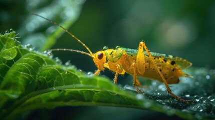 A cockroach looking shocked with big cartoonish eyes, isolated on a bright yellow background