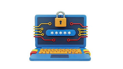 3D Laptop with Padlock and Password Input