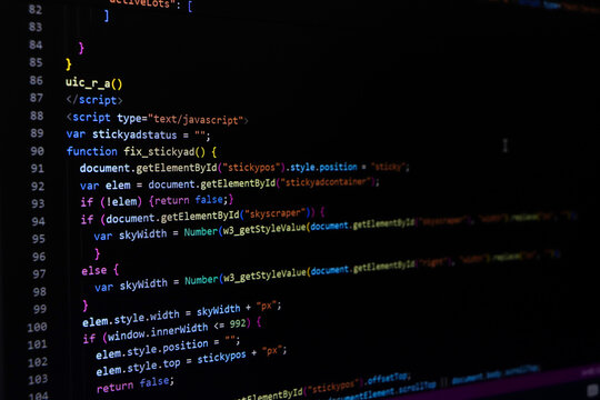 Software source code. Programming code. Programming code on computer screen. Developer working on program codes in office. Source code