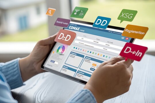 DNS domain name system and web server network system concept. Domain registration, website name, url address web page and hosting on website creation. Search website on computer laptop.