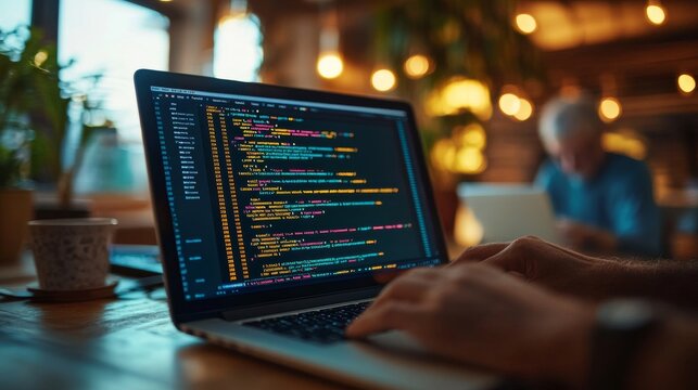 Closeup of a coding script running on a computer screen, symbolizing technology, innovation, and digital transformation, with a focus on modern data programming and development in a notebook.