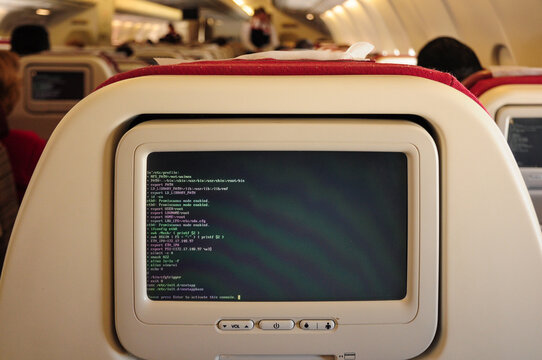 Airplane seat with Linux terminal on in-flight entertainment screen