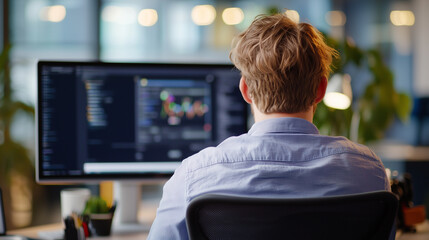 Cyberpunk Coder Working in a Neon-Lit Multi-Screen Setup