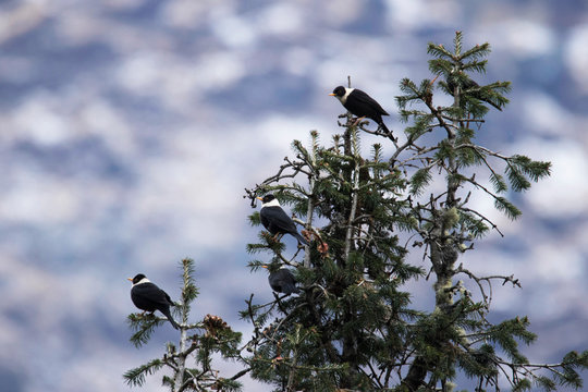 White Collared Black Bird, Turdus albocinctus, Sattal, Uttarakhand, India
