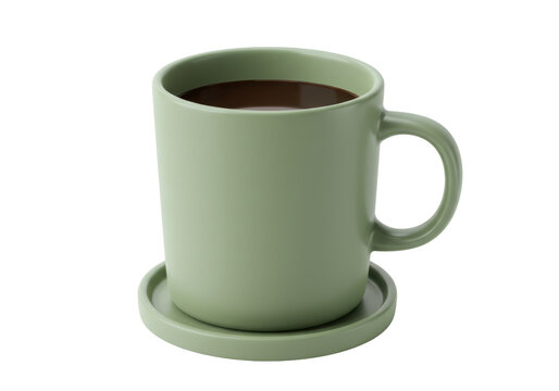 Isolated coffee in a green mug with matching coaster for a morning beverage
