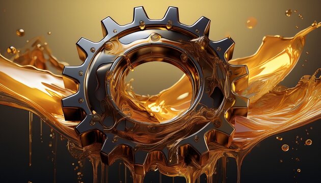 Metallic gear wheel detailed mechanical component isolated on dark background