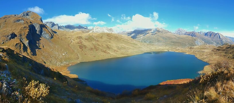 Mountain lake Lago di Loie in National park Gran Paradiso, Lillaz, Cogne, Aosta valley, Italy. Summer landscape in the Alps.