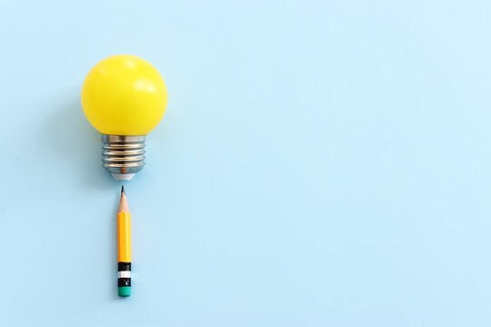 Education concept image. Creative idea and innovation. light bulb metaphor over blue background