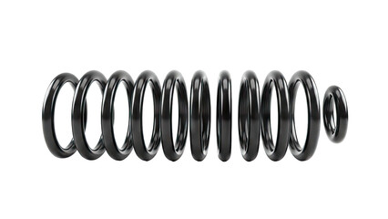 Black metal coil spring with silver ends on white background
