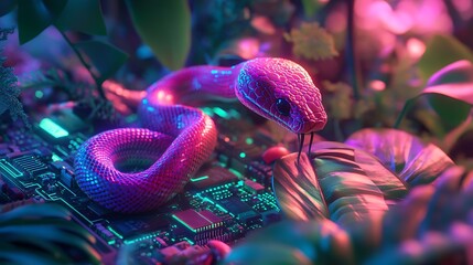 Coiled green tree python resting on rainforest branch with vivid emerald scales