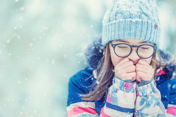 Bad weather in winter: a heavy snowfall and blizzard in city. Male pedestrian hiding from the snow under umbrella