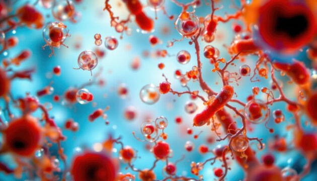 create an aesthetically pleasing image that features a close up of escherichia coli bacteria and other intestinal microflora under a microscope