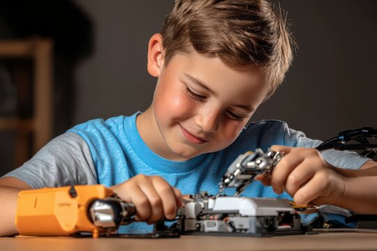 A young maker building an advanced robot using innovative problem-solving techniques.