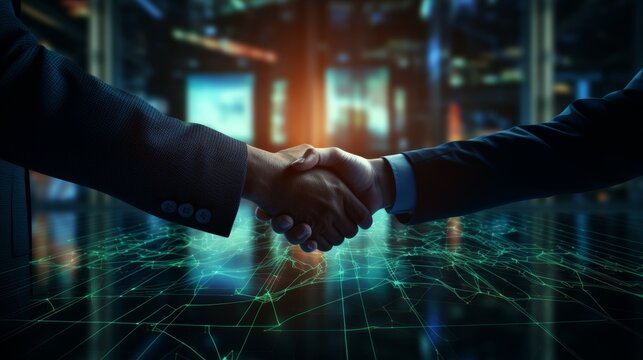 Global business success digital interface handshake