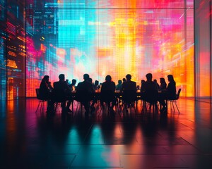 Silhouetted Tech Discussion Abstract Digital Interface in Pastel Tones