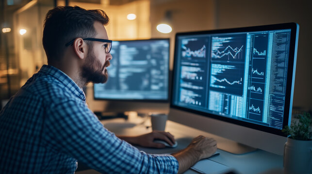 Man, programmer, web developer or designer, sitting at a desk in an office and working on a computer.