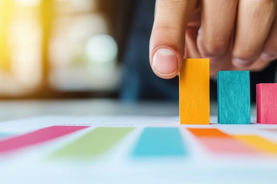 Tactile Data Visualization Colorful Business Strategy Blocks Revealing Innovative Performance Metrics for Modern Analytical Decision-Making Processes