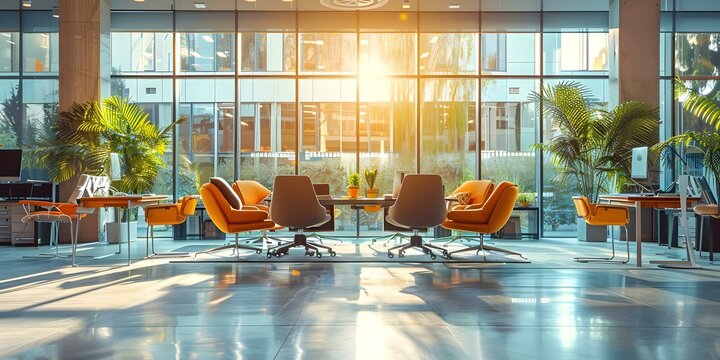 Collaborative work environment modern office business scene bright interior daylight productivity concept