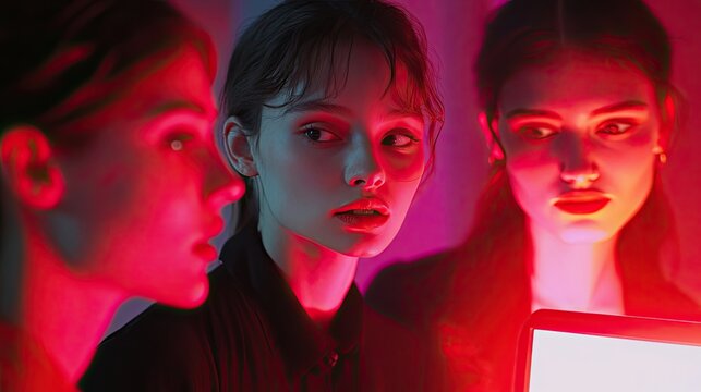 A group of young professionals in a modern cafe, working together on a laptop and tablet, sharing ideas and collaborating on a project.