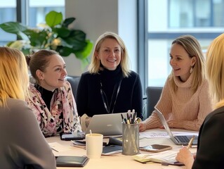 Diverse office team in a collaborative environment sharing a joyful moment together
