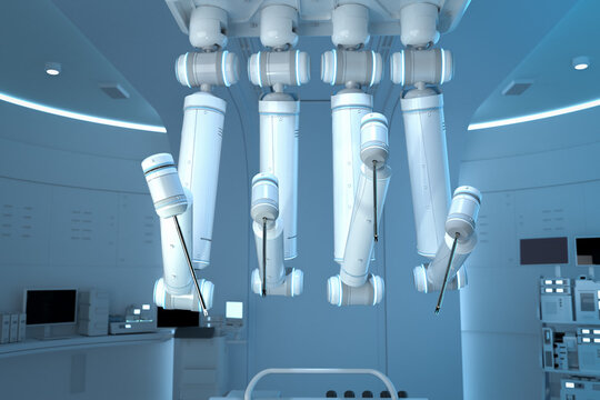 Four serious adults, mixed gender and ethnicity, focus on surgical procedure in operating room. Their hands together in a circle symbolize teamwork and collaboration during critical moment.