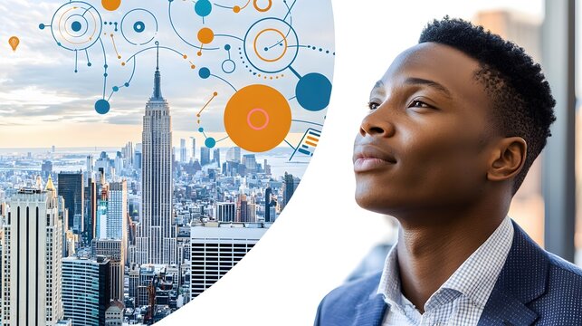 of a man in a co-working space, integrated with an image of collaborative projects and teamwork. | [men's]:[entrepreneurship]