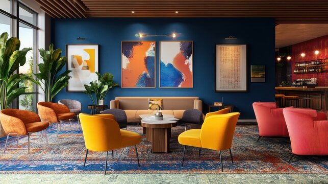 Community-focused networking event, informal seating, vibrant decor, and a collaborative atmosphere