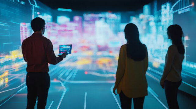 Innovative data interaction showcase modern office digital art collaborative space close-up perspective user engagement