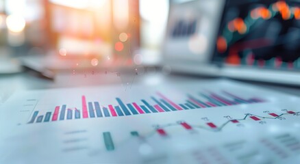 Business Analytics Report With Graphs on Table During Sunset in Modern Office
