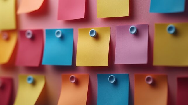Colorful sticky notes arranged on a board to facilitate brainstorming and organization, perfect for creative projects or team collaborations