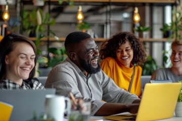 Dynamic team collaborating in modern office setting