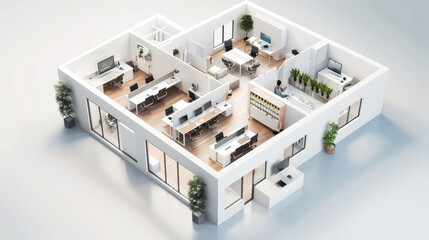 Modern open office space design with sleek desks and bright light, perfect for showcasing corporate culture, collaborative workspaces, or innovative business environments