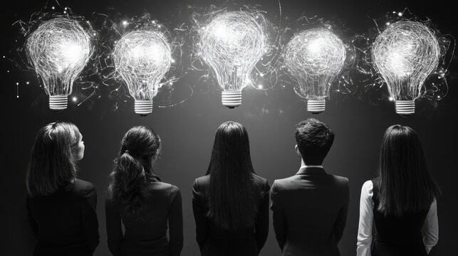 Creative team brainstorming session with bright ideas concept