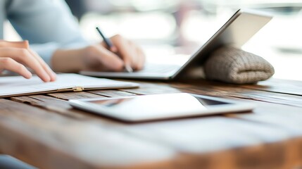 Collaborative work session office space digital interaction modern workspace top-down view productivity focus