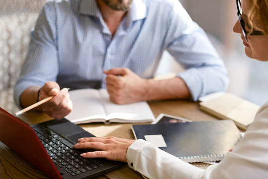 Two middle aged Caucasian businesswoman having a conversation about work in a restaurant