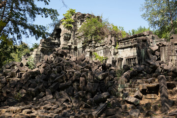 Collapsed stone blocks of the Ta Prohm temple