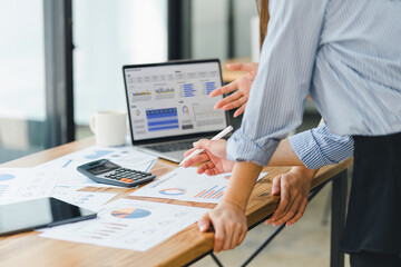 Businesswomen analyzing data together in teamwork for planning and startup new project.