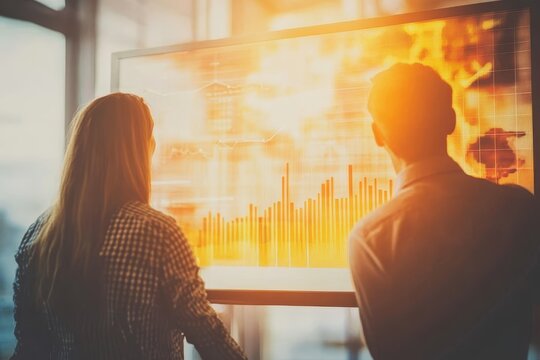 Professionals Analyzing Data Trends on Screen in Office Environment