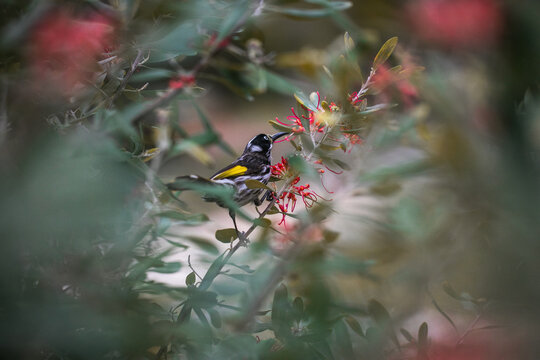 Bee collecting pollen on vibrant yellow daisy macro nature close-up for pollination study