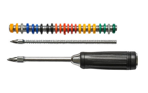 Versatile screwdriver kit featuring multiple bits and color coded ergonomic handles isolated on transparent background PNG