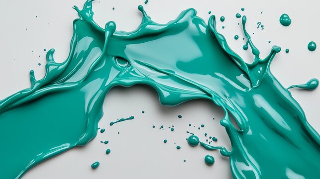 Top view of three teal liquid splashes in varying tones merging into a single cohesive color on a white background