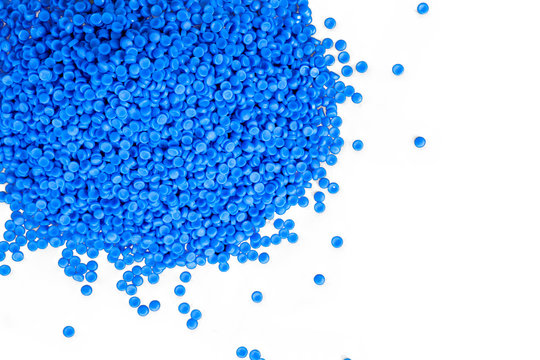 Close-up of plastic polymer granules, polymer plastic, polymer pallet, Plastic ball. plastic granules background
