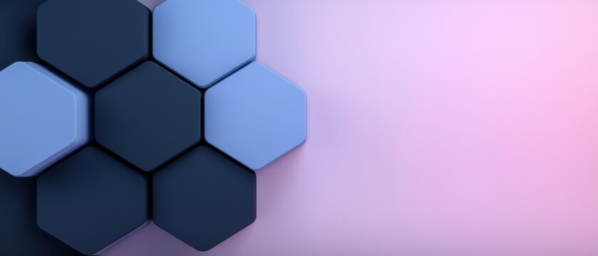 Minimalist abstract piece featuring bold, colorful hexagons arranged in a honeycomb pattern on a white background, with subtle gradients adding depth.