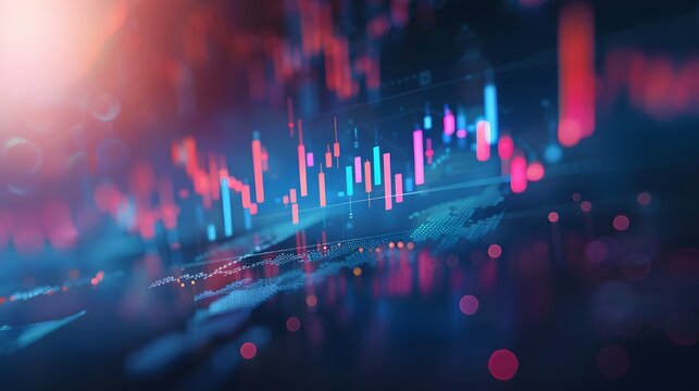 Abstract financial trends with illuminated bar charts and a glowing line graph