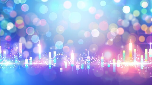 A data visualization with a deep blue color scheme features a digital graph and glowing particles on an abstract background, embodying futuristic stock market analysis.