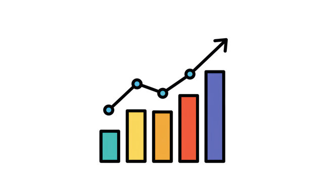 Colorful abstract financial chart with line graph and hexagonal elements in red and blue.