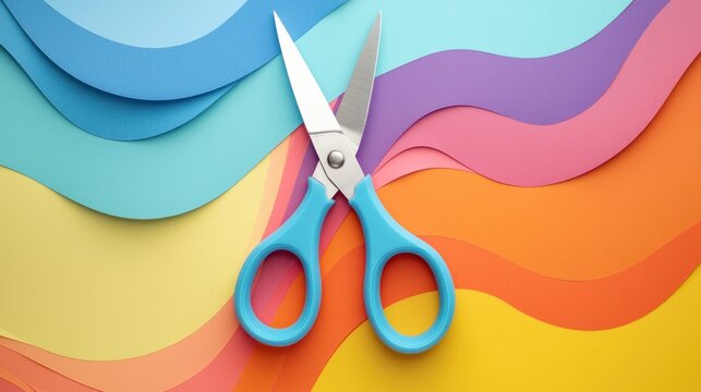 A pair of zigzag scissors cutting through a piece of colorful paper, creating a fun pattern.