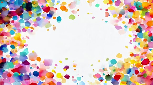 Watercolor rainbow confetti backdrop with transparent text space in the middle